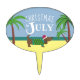 The icing on the Christmas in July cake is this cute cake topper for your summer festive cake. Designed to match your tableware and party decor, your cake will look perfect. Featuring a cute dachsund on a beach with palm trees.