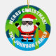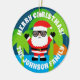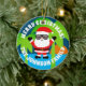 Custom Christmas in July summer tree ornament. Funny Holiday design with cool Santa Claus in sunglasses and tropical beach palm tree sunset. Add your own personalized greeting, funny quote, family name etc. Includes sparkly gold string. Happy Holidays! Upload your own photo on the back optionally.