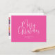These personalized holiday postcards feature the word “Merry Christmas” in elegant white script over a bold fuchsia pink background. The back showcases a soft watercolor side border pattern for a modern, minimal look that fits perfectly with any pinkmas holiday theme.