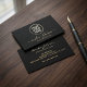 Custom Circular Logo Elegant Black Gold Script Business Card