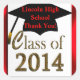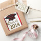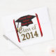 Easily add "Any School Name Or Graduate's Name Thank You!" or your custom text, to these graduation stickers, favors, tags, or envelope seals. Great Class of 2014 graduation stickers in cool gold text graphic and a black graduation cap with gold tassel all on a white announcement. An elegant red border is on this graduation sticker. Nice for kids, teens, and men and women graduates of all ages!