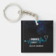 A modern unique and elegant blue and white stethoscope in a Heartbeat shape, Custom Graduation Name Year class of a 2023 graduate. Classy custom high school or college graduation Keychain for the graduate student. Personalize with your graduating year class, graduating child's name, and school under the black grad cap. Elegant gold typography for a parent.