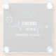 A modern unique and elegant blue and white stethoscope in a Heartbeat shape, Custom Graduation Name Year class of a 2025 graduate. Classy custom high school or college graduation Glass Coaster for the graduate student. Personalize with your graduating year class, graduating child's name, and school under the black grad cap. Elegant gold typography for a parent.