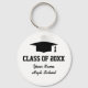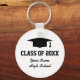 Custom class of graduation party favor keychains for graduate students. Cute gift idea for high school grads with personalized school name and class of year 2019 2020 2021 etc. Graduation hat / cap design with cool typography. Also cute for reunion parties.