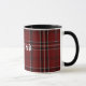 Great looking Scottish clan mug done in the classic dark red, black, and white Lougheed plaid pattern. Old world style text in white reads Lougheed and is customizable to read what you want.