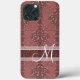 Beautiful contemporary wine red antique intricate damask flower pattern. With room to personalize or customize with monogram or initial of your choice. Beautiful, modern and cool cover for the trend-savvy and art-loving hip trendsetter, artsy motif lover who wants to protect their phone from dust and dirt, wear and tear. This design is available Apple iPhone 6, 7 and 8 Plus, 10 or X, XR, XS , 11, 12, and 13 Mini and 14 Pro Max cellphone cases. Show off your personal style, look fashionable trendy and feel stylish with a unique design on a mobile device accessory of your choice.