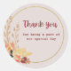 Express heartfelt gratitude with this elegant Thank You floral sticker, designed with soft watercolor blooms and a refined gold circular frame. Perfect for weddings, bridal showers, baby showers, anniversaries, and special events, this timeless design adds a graceful finishing touch to favor bags, gift boxes, envelopes, and packaging. A beautiful way to thank guests for being part of your most memorable moments.