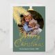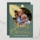 Contemporary classic Christmas holiday season greeting card with white colored pine tree needles wreath leaves pattern on a classy green gray background, with real gold foil Merry Christmas wish text. With option and room to customize the text, family name and year date, and add a personal photo of your choice on the front, and a customizable season greeting message on the backside of the card.