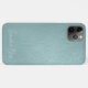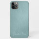 Contemporary light aqua seafoam green colored faux leather textured cellphone case. With room to customize with a name, monogram, or initials of your choice. Beautiful, modern, and cool cover for the trend-savvy and art-loving hip trendsetter, artsy motif lover who wants to protect their phone from dust and dirt, wear and tear. This design is available in Apple iPhone 6, 7, and 8 Plus, 10 or X, XR, XS, 11, 12, 13 Mini, 14 Plus, and Pro Max cellphone cases. Show off your style, look fashionable, and feel stylish with a unique design on a mobile device accessory of your choice.