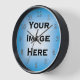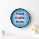 To customize this product, upload your own background image or photo as shown above. To resize or adjust its position, click the Customize It! button below the product image. The positions of the numbers on the clock face can also be tweaked to your liking by resizing the transparent clockface image. You can also add your own text and/or other images if you wish to further personalize this design.
