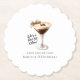 An espresso martini shows that the guest of honor is "a tini bit older." Sophisticated neutral color palette. Martini with a bow and espresso beans.