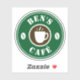 Custom coffee shop business logo vinyl stickers. Round coffee bean and cup design. Personalize with employee name, barista name or cafe / bar company name. Green and brown colors.