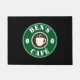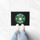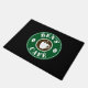 Custom coffee shop doormat with bean logo and cup. Modern black entry rug with personalized name of cafe or bar. Welcome your guests at the door. Also fun for home, office, business, brew house, roast company.