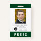 Press Photo ID badge with an editable top bottom border color (click customize, select "NameTagBadge3.2" layer and change color), editable back background color and which you can also add your logo. Great for journalists, reporters, photographers, writers, bloggers, etc.