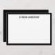 This modern note card features bold lettering for your name, business name, etc, a customizable border on the front and back background color (simply click customize to change the background color of both front and back), and a white center on the front.