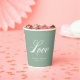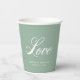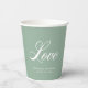 Paper cups with the word "love" in stylish cursive type and an editable background color (click customize, go to the "Auto Warping, Wrap" layer and change the background color). Perfect for wedding showers, engagements and wedding anniversaries.