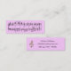Change the lavender background to any color that you like! Perfect for the musician or the music lover, this skinny profile card features a few measures of lively music on the front. On the reverse, a shining treble clef and a template for your name and contact info, or anything else you'd like to print. Doubles nicely as a book mark! To change background color, just click "customize", then "edit", "background".