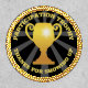 Funny faux gold participation trophy, personalized with your text and choice of background colors on this iron-on or sticker patch that will look cool on your bag, jacket, shoes, electronic doohickeys, ride, drink, or study gear.