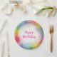 Modern Pink Red Yellow Orange Blue Green Colorful Custom Handwritten Script Happy Birthday Text Template Crafts & Party Supplies / Party Supplies / Tableware / Paper & Party Plates / Classic Round Paper Plate.