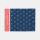 Nautical style blanket featuring a white anchor pattern with an editable background color, click the customize button for access. To change the blue color, select background color and change its color. To change the coral color, select rectangle layer and change its color.