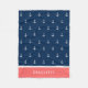 Custom Colors Add Name Nautical Anchor Fleece Blanket