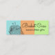 Fun knitter's "handmade with love" tag or mini business card for your knitting crafts business, featuring a hand drawn or doodle sketch style yarn basket with balls of yarn and knitting needles with your choice of background color blocks.