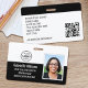 Create a professional appearance with a branded employee ID badge. This editable template can be personalized with your profile photo, name, job title, company name, number, and logo. Return details are on the back, along with additional information, and a QR code. Perfect for creating a cohesive branding experience, or simply to verify the identity of the wearer and display their qualifications. This identification badge is ideal for customer-facing roles and corporate settings — from business consultants and retail stores to medical professionals, hospital staff, office workers, conference teams, corporate events and more. Custom badges build brand identity and enhance security. Printed colors: Black, gray and white. Horizontal format.