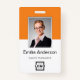 Easily personalize this custom orange employee name and photo badge with your own company logo and qr code or bar code. Available with different background colors and attachments. No minimum order quantity.
