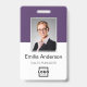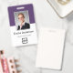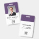 Easily personalize this custom purple employee name and photo badge with your own company logo and qr code or bar code. Available with different background colors and attachments. No minimum order quantity.