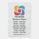 Simple, chic business hours of operation garden flag sign for a modern company or corporation to post for customers or employees. Add your custom corporate logo and name along with your opening and closing times.