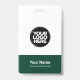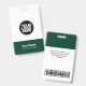Easily personalize this Custom Administrative professional Name Badge without photo, with Scan Bar Code and large business logo. A simple business design in dark green and white colors fully customizable in front and back sizes, sans-serif basic and modern fonts and a professional and clear look, perfect for small business employee, boss, guests. These business id badges supplies are avaiable with lanyard, metal clip or with retractable. No minimum order, but save money and enjoy Zazzle discounts by multiple orders!