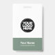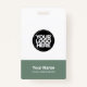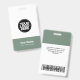 Easily personalize this Custom Administrative professional Name Badge without photo, with Scan Bar Code and large business logo. A simple business design in organic sage green and white colors fully customizable in front and back sizes, sans-serif basic and modern fonts and a professional and clear look, perfect for small business employee, boss, guests. These business id badges supplies are avaiable with lanyard, metal clip or with retractable. No minimum order, but save money and enjoy Zazzle discounts by multiple orders!