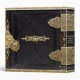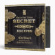 An antique leather look cookbook in gold colors for "secret" family recipes.