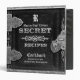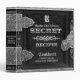 An antique leather look cookbook in black and silver colors for "secret" family recipes.
