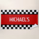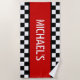 Custom Cool Black White Checkered Flag On Red Beach Towel