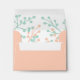 Use this custom coral or peach envelope in place of the generic white envelopes that come standard with all of the cards and invitation in the Rustic Floral Wedding Collection. This envelope features a coral exterior with a mint green and coral floral pattern on the inside. This envelope is not pre-addressed, so you can write it yourself and give your cards a more personal touch. We also offer envelopes that have either the address or return address pre-printed to save you time. The default size is 5 3/4" W x 4 3/8 H (A2) and fits the small greeting cards and invitations. You can order a different size by selecting "customize it" and "Choose your paper type and color". A7 fits 5x7 invitations and cards. A6 is for the small invitation, but will also fit the small greeting card (note card). A2 is for the small greeting card (note card), but will also fit the small invitation.
