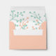 Use this custom coral or peach envelope in place of the generic white envelopes that come standard with all of the cards and invitation in the Rustic Floral Wedding Collection. This wedding rsvp envelope has a coral and mint green floral pattern on the inside and a pre-printed address on the front. You can easily customize the address on the product order page. The default size is 5 3/4" W x 4 3/8 H (A2) and fits the small greeting cards and invitations. You can order a different size by selecting "customize it" and "Choose your paper type and color". A7 fits 5x7 invitations and cards. A6 is for the small invitation, but will also fit the small greeting card (note card). A2 is for the small greeting card (note card), but will also fit the small invitation. We also offer this envelope design without the printed address if you would rather write your own or use address labels.