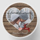 Cute December Christmas holiday soy candle with room to personalize or customize with names of your choice in an elegant font script, a personal photo and year date of your choice. Framed by a stylish heart shape on a rustic farmhouse or log cabin wooden planks pattern background. Unique memories keepsake that your other half will love!