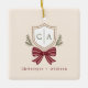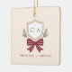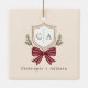 Custom Couple's Monogram Crest Bow Christmas Ceramic Ornament