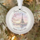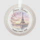 Capture the timeless romance of the French capital with this personalized watercolor ornament. The design features a delicate, painterly illustration of the Eiffel Tower framed by blooming cherry blossoms and a soft sunset glow reflecting off the Seine.