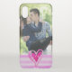 Custom photo phone case with modern pink watercolor stripes and heart design to personalise with your initials.