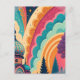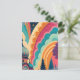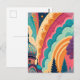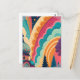 This customizable postcard features a bold, full-color crop of an original fantasy illustration—highlighting a majestic dome, stylized forest silhouettes, and swirling pastel waves in vibrant hues of teal, coral, plum, and saffron. This composition zooms in on color, form, and emotion, offering a more abstract, art-forward aesthetic ideal for creative communication, packaging, and events.