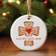 Celebrate your faith with this customizable Christmas ornament, perfect for your youth group or church group! Featuring a beautifully detailed cross with a red heart at its center, this ornament symbolizes pride in Christianity and faithfulness. Surrounded by vibrant scrolls in shades of red, brown, yellow gold, and blue, the intricate design is both whimsical and joyful. The brown outline adds a unique touch, making this ornament a standout piece. Customize it for your church youth group or choir to share the message of faith in a fun and playful way. A perfect Christmas gift that reflects solidarity and devotion to Christian values!