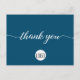 Personalize this simple and easy to use thank you postcard template with your company's logo, message, name, and return address. Let your clients, customers, patrons know you are grateful for their support during these uncertain times. Featuring a printed modern "thank you" script with long-tailed embellishments. Blue background.