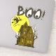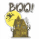 Happy halloween everybody. Haunted house with a witch flying past a full moon.