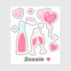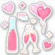 Set of vinyl valentine's day stickers with illustration of champagne bottle and glasses and hearts and balloons in pink and beige color. Cute stickers suitable for a stand alone gift or to decorate a keepsake for a loved one.