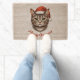 Custom Cute Christmas Cat with Santa Hat Fiber Doormat
