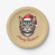 Custom Cute Christmas Cat with Santa Hat Paper Plates