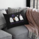 Elevate your Halloween home decor with this cute throw pillow with a friendly ghost trio, bat, and spider. Phrase is customizable on front. The back is plain black with customizable script text in white.