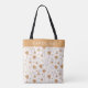 This tote bag features a delightful Halloween-themed floral pattern in warm autumnal shades, with cute illustrations of ghosts, pumpkins, and stars, all set against a soft beige background. The top portion is personalized with your name in a simple and elegant font, adding a personal touch to the design. The combination of earthy tones and whimsical Halloween elements makes this tote bag a perfect accessory for the season, whether you're heading out for Halloween festivities or just enjoying the fall vibes.